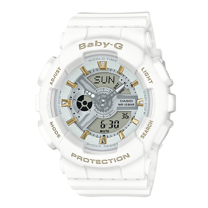 Những mẫu mới bổ sung vào Dòng BA-110 này kết hợp màu sắc bắt mắt với bề mặt không bóng tinh tế. Các mẫu này có bốn màu: đen cơ bản, trắng cơ bản, màu mộc thịnh hành và màu xám nhạt. Các bộ phận kim loại màu vàng được dùng cho vạch giờ và các chi tiết trên mặt đồng hồ để mang đến điểm nhấn bắt mắt, đồng thời mặt đồng hồ 3D mang lại cảm giác về độ sâu. Những màu sắc đơn tông và chi tiết kim loại tạo nên thiết kế sành điệu mà không phô trương.