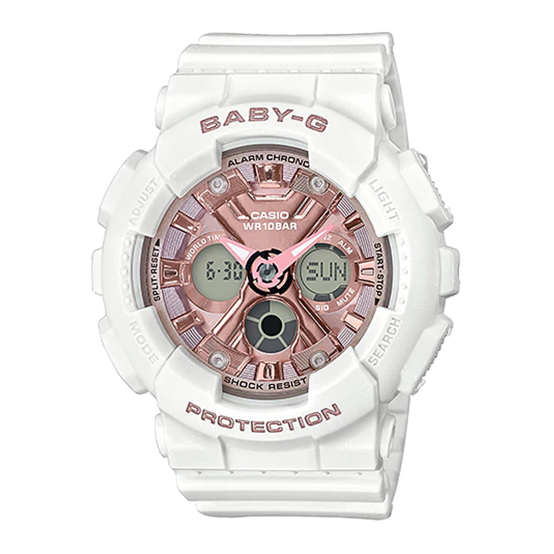Mẫu cơ bản là BA-130, phiên bản nhỏ gọn của thiết kế G-SHOCK được ưa chuộng. Sắc trắng và hồng của mẫu sản phẩm này kết hợp với màu kim loại của các bộ phận mặt đồng hồ đem đến diện mạo tươi sáng. Tông màu đơn sắc tinh tế của mẫu đồng hồ màu đen để lại ấn tượng về vẻ ngoài sành điệu.