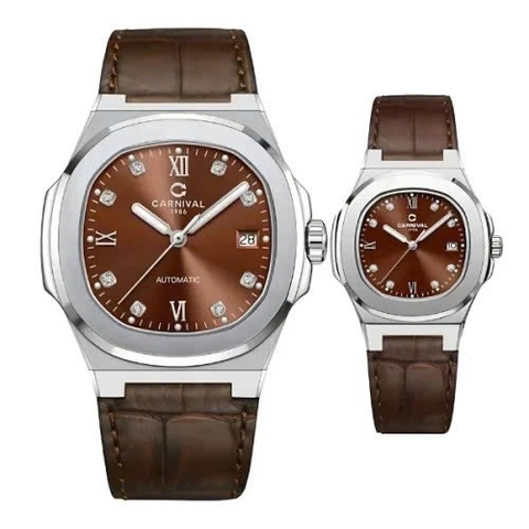 Đồng Hồ Cặp Đôi Dây Da Carnival 8160-VH-DD-N Chocolate Rose Gold
