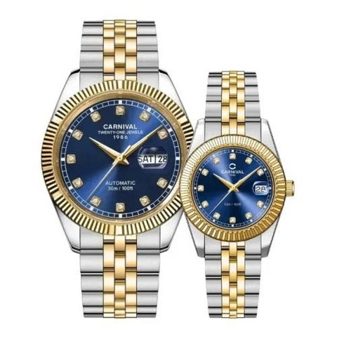 Đồng Hồ Cặp Đôi Dây Thép Carnival 8131-CV-X Navy Demi Gold