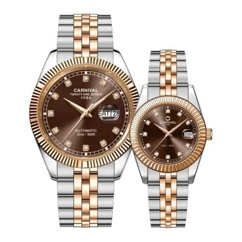 Đồng Hồ Cặp Đôi Dây Thép Carnival 8131-CH-N Chocolate Demi Rose Gold