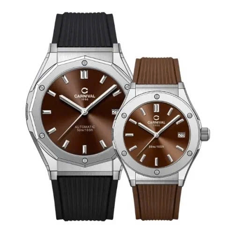 Đồng Hồ Cặp Đôi Dây Cao Su Carnival 8168-VH-DCS-N Chocolate Rose Gold