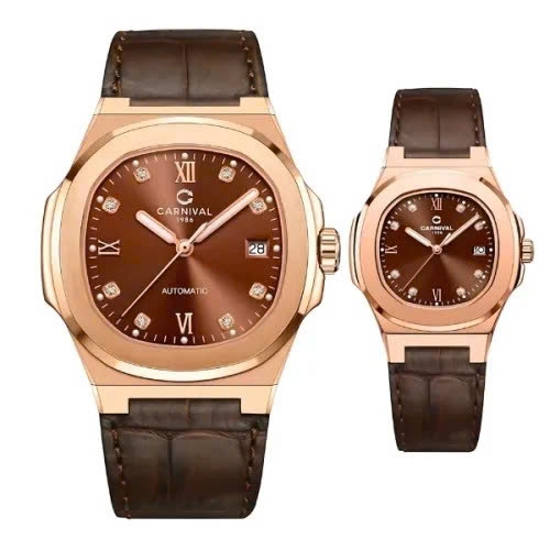 Đồng Hồ Cặp Đôi Dây Da Carnival 8160-VH-DD-N Chocolate Rose Gold