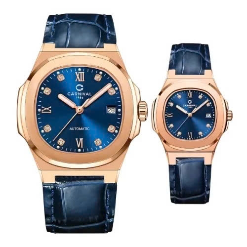 Đánh giá chi tiết Đồng Hồ Cặp Đôi Dây Da Carnival 8160-VH-DD-X Navy Rose Gold