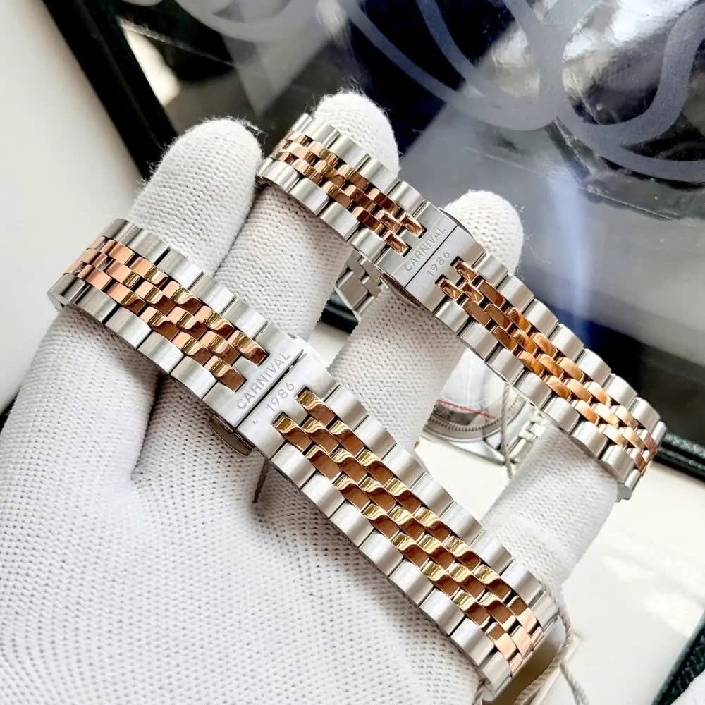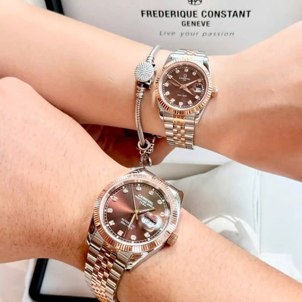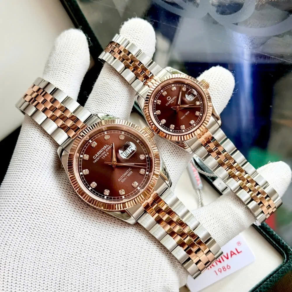 Đánh giá chi tiết Đồng Hồ Cặp Đôi Dây Thép Carnival 8131-CH-N Chocolate Demi Rose Gold