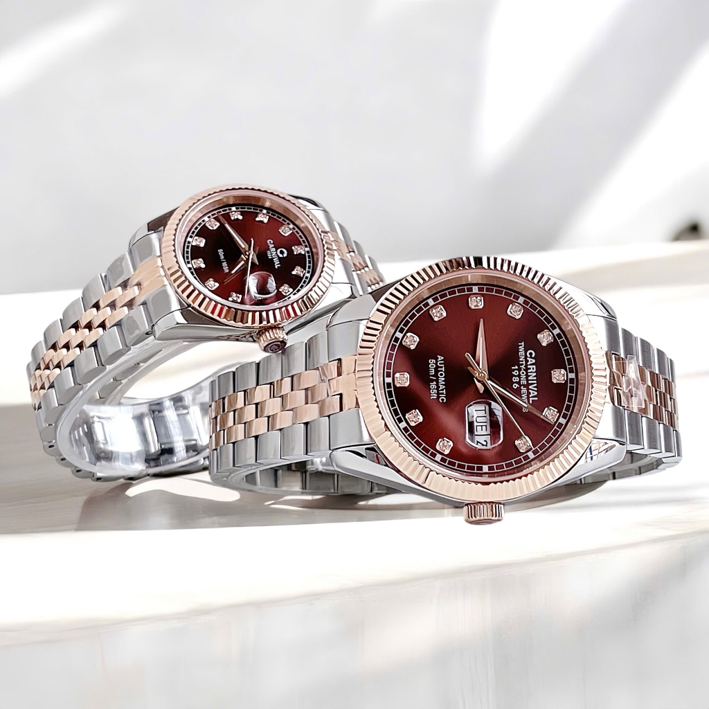 Đồng Hồ Cặp Đôi Dây Thép Carnival 8131-CH-N Chocolate Demi Rose Gold