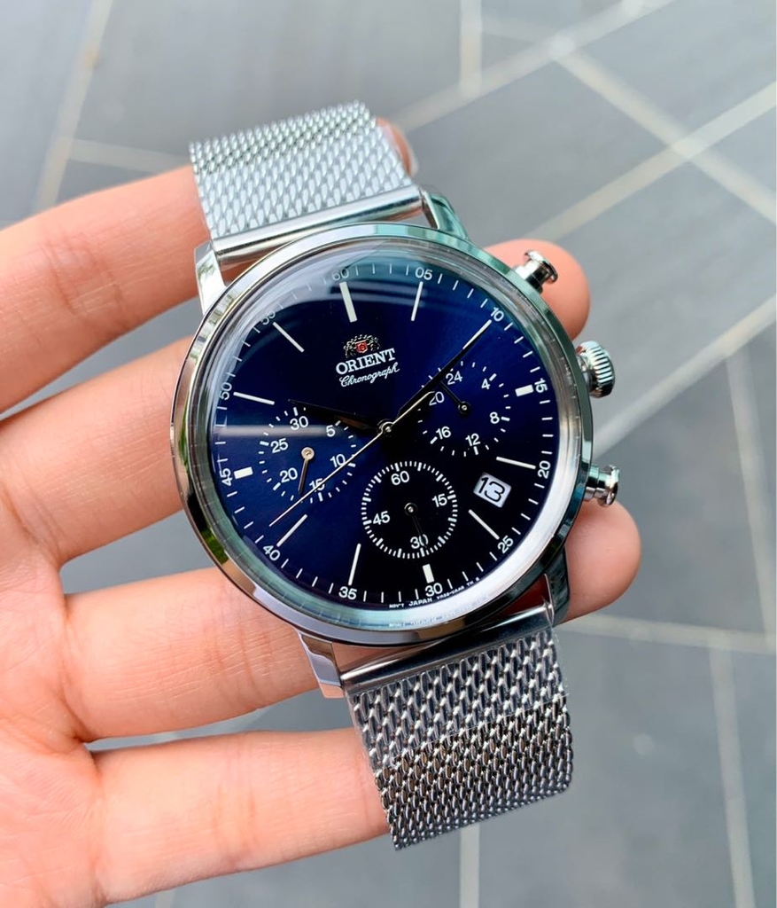 - Với dial mặt xanh dương long lanh cuốn hút. Trang bị thêm chức năng Chronograph bấm giờ thể thao vô cùng tiện lợi.