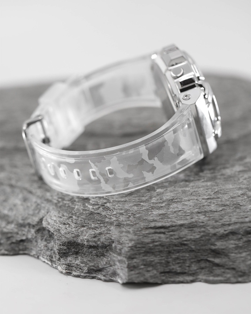 Dòng G-SHOCK phủ kim loại mới này bao gồm GM-110, GM-5600 và GM-6900 có dây đeo bán trong suốt thời trang cùng họa tiết ngụy trang.